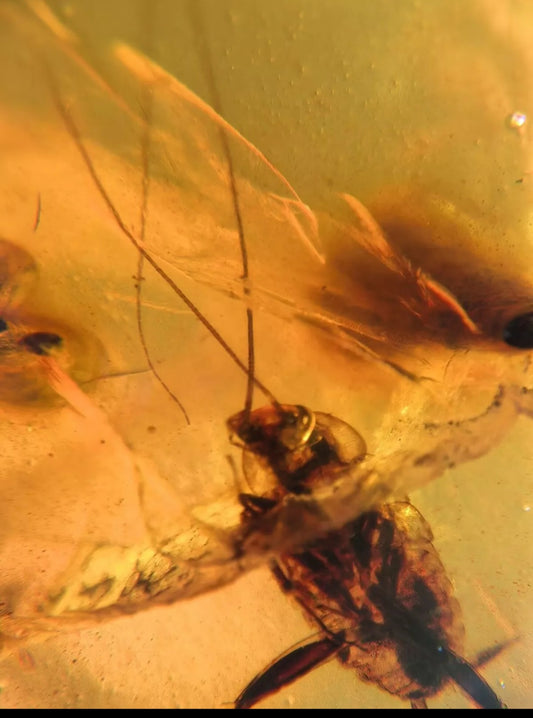 Cadis Fly W/ plant Spores In Burmese Amber