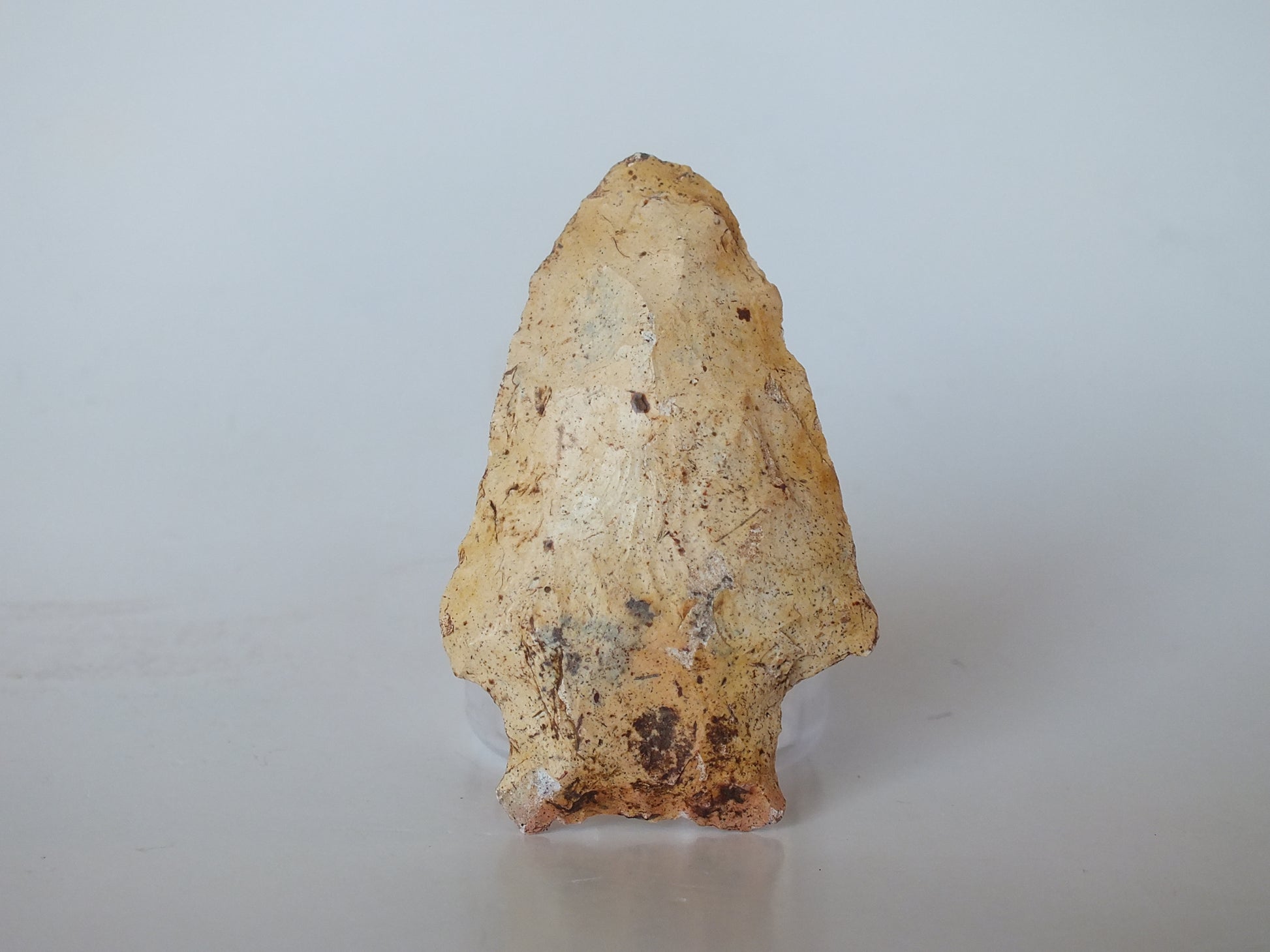 Description of Physical Characteristics and Flaking Pattern:This is a medium (1.5 to 2.75 inches) triangular expanding stem with an elliptical cross section. The blade is primarily excurvate, but may vary to straight. The shoulders are commonly at an upward angle, but can range to horizontal. The stem ranges from expanding to slightly expanding with a straight to convex base. This point has a random flaking pattern.