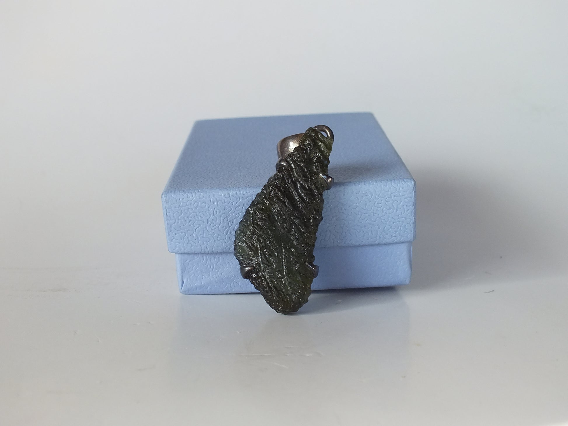 Moldavite is a forest-green, naturally occurring glass formed from a meteorite impact in Germany about 15 million years ago; it is a type of tektite ejected by the impact, cooling as it was flung through the atmosphere. These fragments, which can be any shade from light to dark green or even brownish, are found in specific areas of Germany, Austria, and the Czech Republic